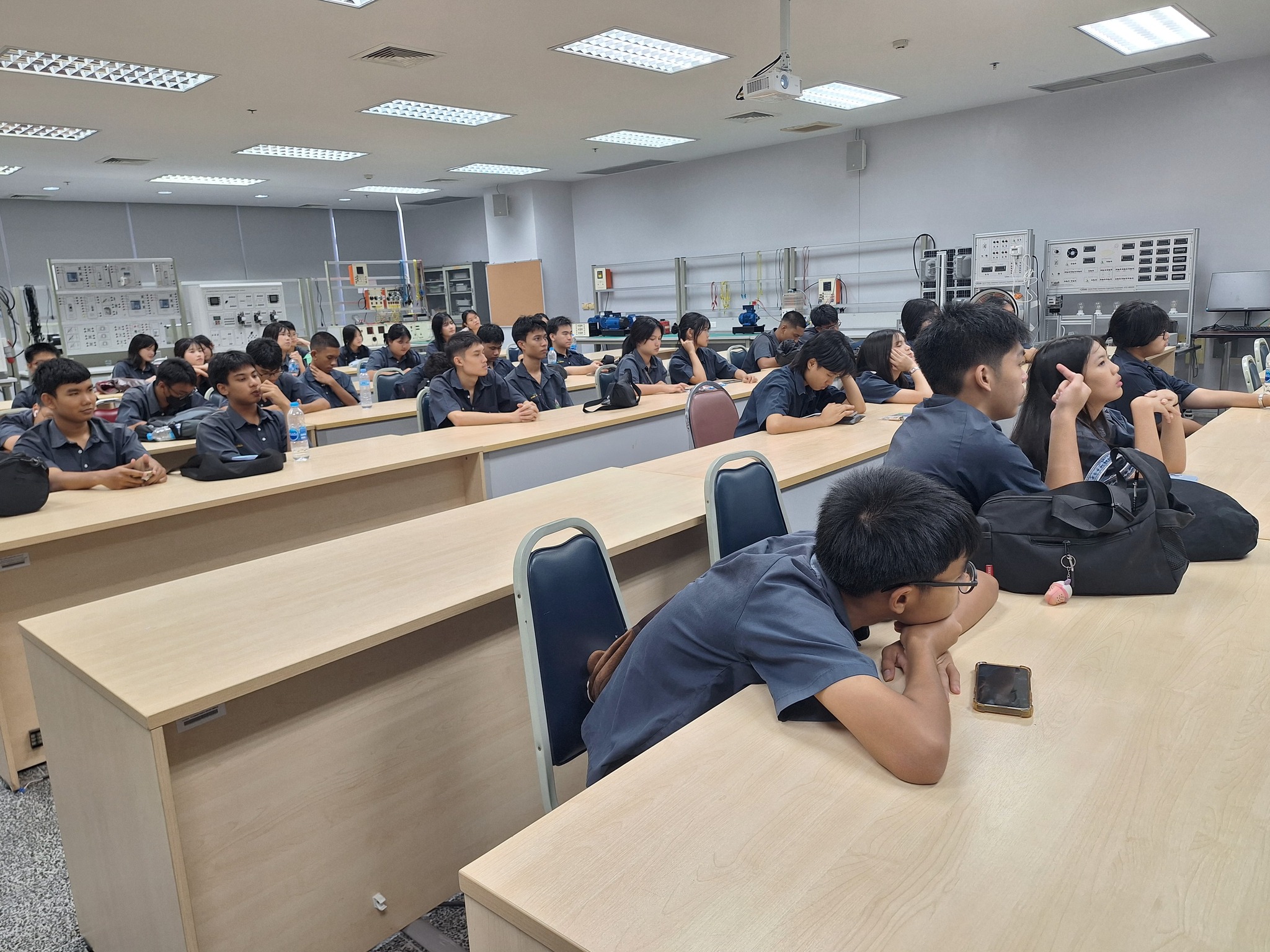 เมื่อวันจันทร์ที่ 25 สิงหาคม 2568 โรงเรียนบางปะกอกวิทยาคม เข้าศึกษาห้องปฎิบัติการ ภาควิชาวิศวกรรมเครื่องมือวัดและพลังงานไฟฟ้า โดยมี ผู้ช่วยศาสตราจารย์ ดร.ฐะปะนีย์ ตรีรัตนภรณ์ รองคณบดีฝ่ายวิชาการ แนะนำภาควิชาแก่คณะครูและนักเรียน พร้อมด้วย ผู้ช่วยศาสตราจารย์ ดร.ชาคริต ปานแป้น ผู้ช่วยคณบดีฝ่ายส่งเสริมวิชาการและอุตสาหกรรมสัมพันธ์ และคณาจารย์ตัวแทนภาควิชา แนะนำหลักสูตร พาเยี่ยมชมห้องปฏิบัติการตามภาควิชาต่าง ๆวัตถุประสงค์เพื่อให้นักเรียนได้เข้าใจ พร้อมสอบถามข้อมูลได้อย่างถูกต้อง และสามารถต่อยอดความรู้เพื่อเตรียมตัวในการเข้าศึกษาต่อภาควิชาวิศวกรรมเครื่องมือวัดและพลังงานไฟฟ้า ณ มหาวิทยาลัยเทคโนโลยีพระจอมเกล้าธนบุรี