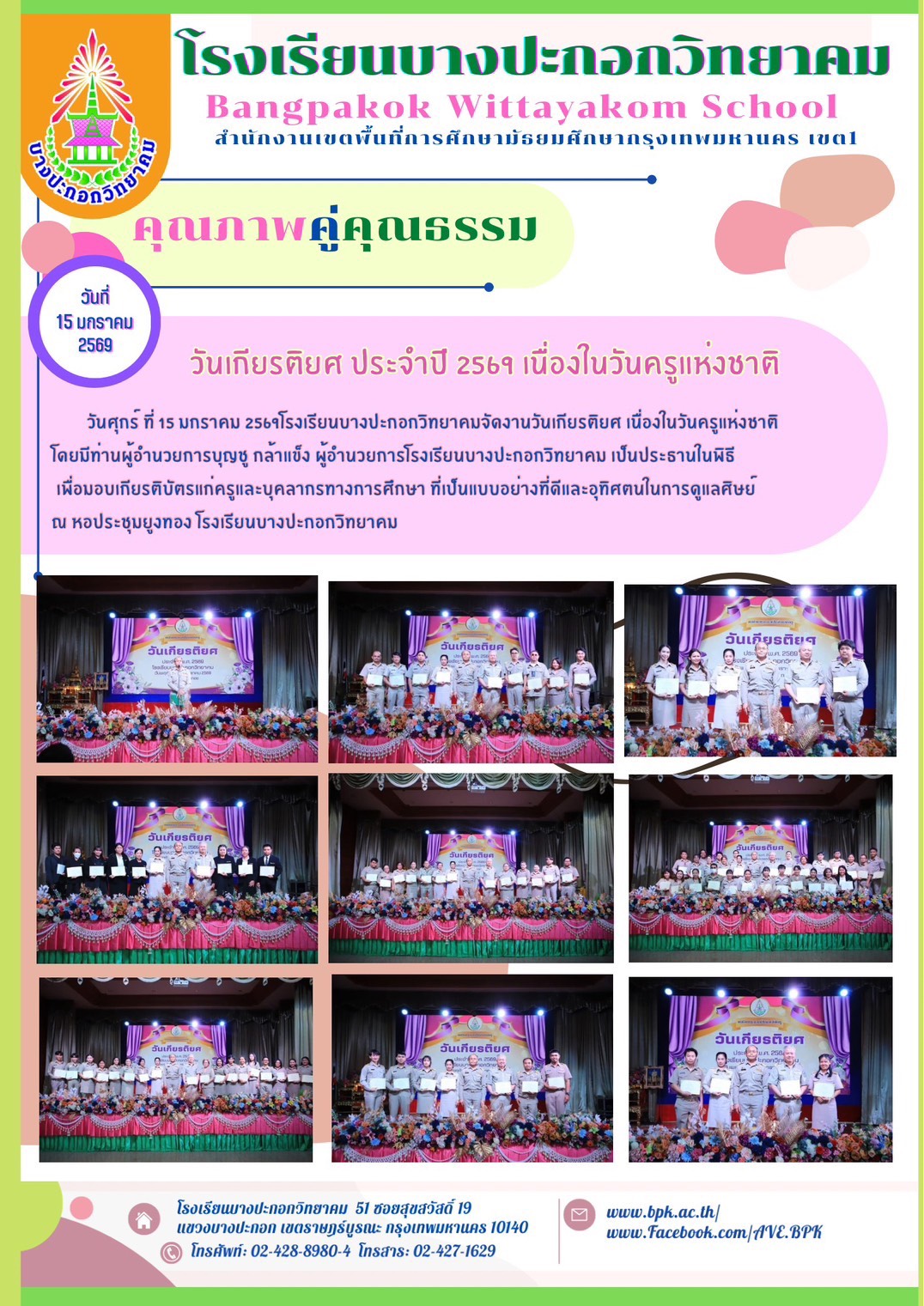 โรงเรียนบางปะกอกวิทยาคม โรงเรียนบางปะกอกวิทยาคม "กิจกรรมวันเกียรติยศ " เนื่องในวันครูแห่งชาติ 2569